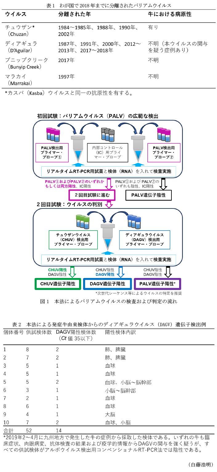 - キーワード : アルボウイルス、パリアムウイルス、リアルタイムRT-PCR法、異常産、牛