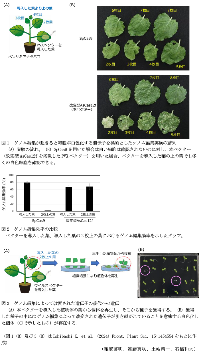 - キーワード : ウイルスベクター、ジャガイモXウイルス、ベンサミアナタバコ、改変型AsCas12f