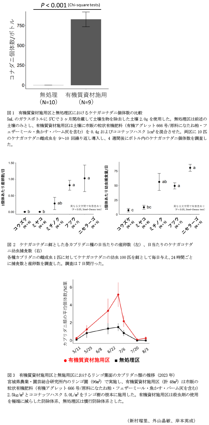- キーワード : 有機質資材、コナダニ、カブリダニ、天敵保全、減農薬