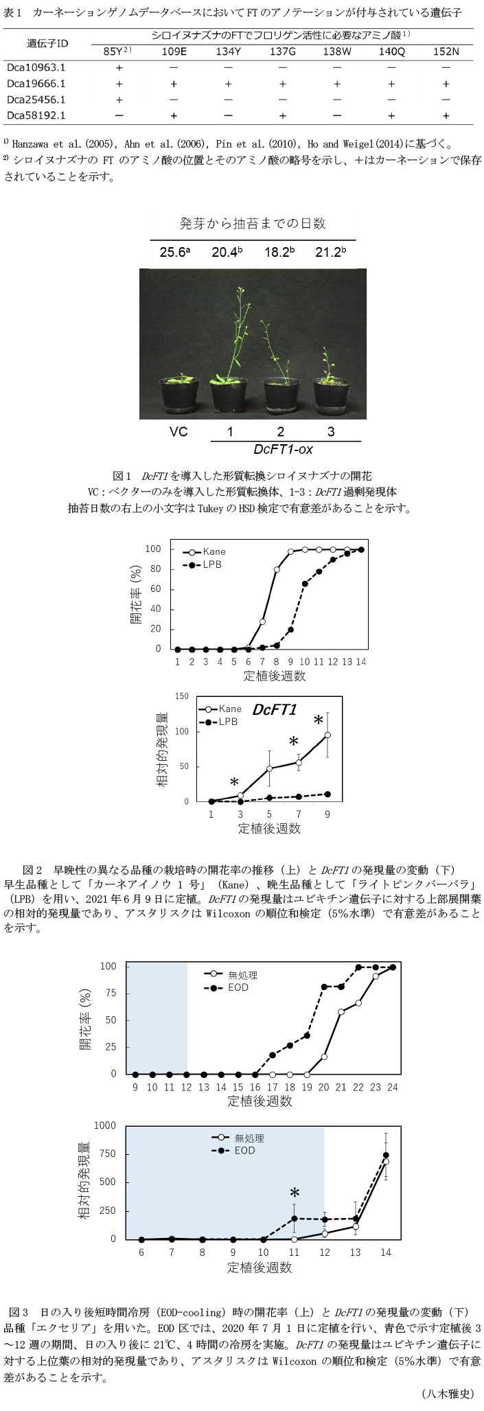 - カーネーションの開花調節機構の分子生物学的理解につながる重要な基礎的知見である。