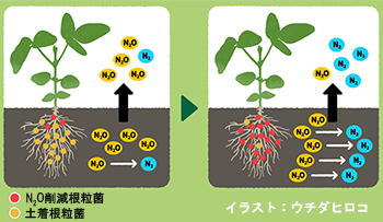 ダイズ・根粒菌共生系で温室効果ガスN2Oを削減