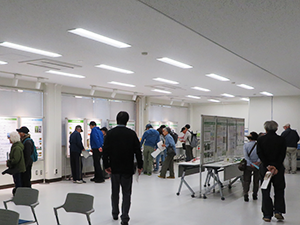九州沖縄農業研究センターの概要を紹介する動画の上映や、パネル展示による活動紹介を行いました。パネル展示では、九沖研が九州・沖縄地域に持つ7つの拠点等について紹介し、また各研究領域における取り組みや成果を、研究者が直接わかりやすく紹介しました。さらに、農業の最新技術や取り組みをテーマにしたミニセミナー(害虫防除、肥効見える化アプリ、スマート農業、大豆新品種など)も開催し、研究の魅力を身近な情報とともにご紹介しました。