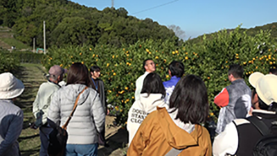 参加者からは積極的に質問が寄せられ、美味しいカンキツを育てる方法などについて理解を深めていただきました。講義の後にミカン畑の見学も行きました。剪定の方法やどの枝に実っているミカンが美味しいのかなどの質問も寄せられ、もぎたてのミカンの味の比較をしました。参加者の中にはお子様がミカン農家になりたいとおっしゃっているご家族もおられ、真剣にメモを取る学生の姿が印象的でした。