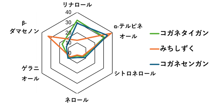 「コガネタイガン」は、原料用の主力品種「コガネセンガン」よりも収量が優れ、「みちしずく」並みに多収で、基腐病に対する抵抗性があります。塊根腐敗症状の原因の一つであるサツマイモつる割病3)に対しては、「みちしずく」よりも強い抵抗性を有しており、また、線虫にも強く、複数の主要な病害虫に対する抵抗性(複合抵抗性)を持っていることから、安定生産が期待できます。「みちしずく」よりも萌芽性に優れているため、苗を作りやすく、早期植付の作型4)にも対応しやすいです。でん粉の特性は従来のでん粉原料用品種と同様で、焼酎にした時の酒質は「みちしずく」と同様、「コガネセンガン」に似ています。でん粉と焼酎、いずれの原料としても利用できる汎用性を有していることから、「みちしずく」と併せて普及させることで、単一品種を栽培することによるリスクの軽減、サツマイモ生産量の向上と原料の安定供給への貢献が期待できます。