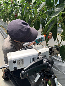 本手法は現時点ではポロメーター・クロロフィル蛍光測定装置を用いて人が測定を行う必要がありますが、将来的に収穫ロボットなど自動ロボットの高度化が進めば、装置をロボットに搭載して自動で光合成データを取得することも可能になると考えています。そうすることで、データ取得のさらなる効率化・省力化が期待できます。今後はリモートセンシングや自動ロボットの研究者とも連携し、本手法のさらなる利便性向上を目指します。