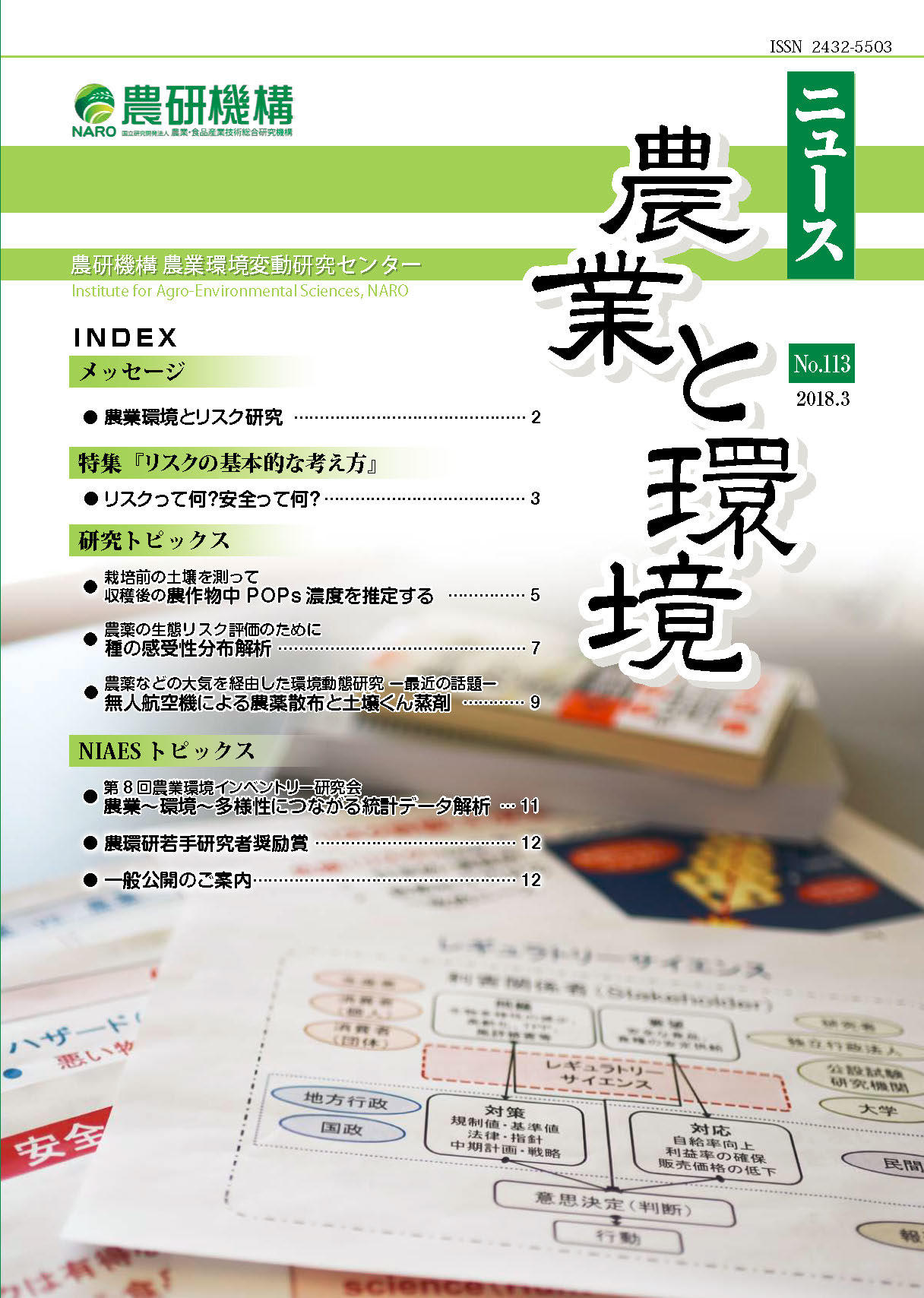 「農環研ニュース」は、本号より「ニュース農業と環境」にタイトルを変更しました。 |