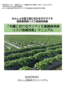 「戦略的スマート農業技術等の開発・改良(令和4年度~令和6年度)」(JPJ011397)で実施されたサツマイモ基腐病総合防除体系に関する技術開発の成果として、かんしょの各生産工程で実証された有効な防除対策技術や、次作の本圃での防除意思決定に役立つ発病ポテンシャル診断技術などを、計3冊の技術マニュアルから成る技術集として取りまとめました。 本冊子は、本圃でのかんしょ栽培の工程で基腐病の防除対策につながる技術マニュアルであり、薬剤を核とする総合的な防除体系を実例も含めて解説するとともに、本圃で行うべき耕種的な防除対策や今後活用が期待できる抵抗性品種の概要などを解説しています。 |