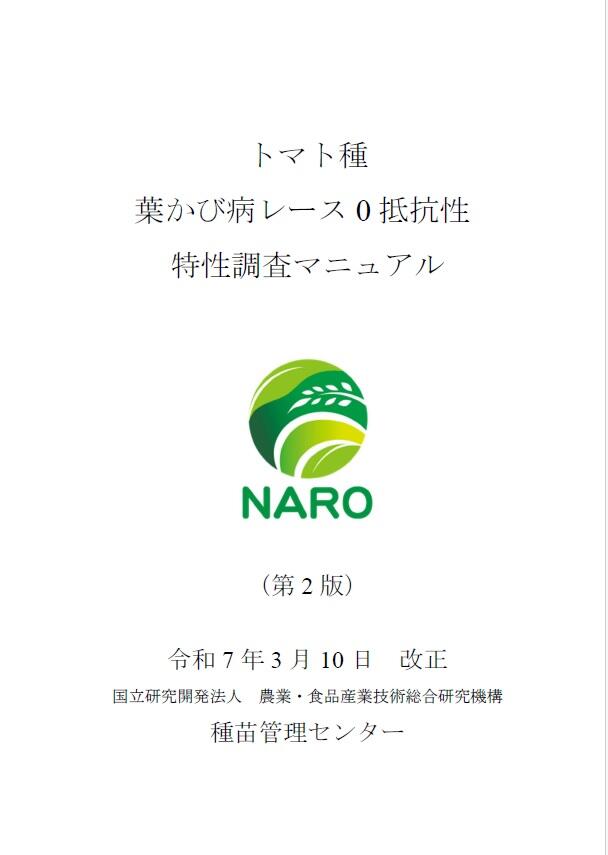 園芸・茶 技術紹介パンフレット トマト種 葉かび病レース0抵抗性 特性調査マニュアル |