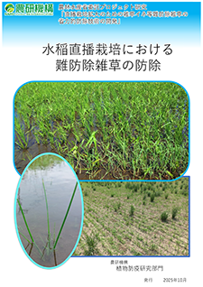 近年、水田作の大規模化に対応するために水稲の直播栽培導入が求められています。しかし、直播栽培での多年生雑草などの難防除雑草対策は困難なため、直播栽培の面積拡大の大きな阻害要因となっています。そこで、農林水産省委託プロジェクト研究「直播栽培拡大のための雑草イネ等難防除雑草の省力的防除技術の開発」(令和元年度~令和5年度)において、直播栽培で防除が困難な難防除雑草の対策技術の開発と生産現場における効果の実証に取り組みました。本資料は、得られた成果を生産現場で取り組めるようとりまとめまたものです。 |
