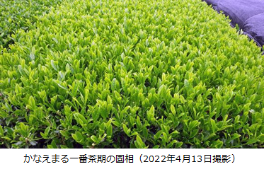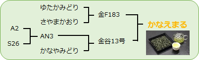 「かなえまる」は2022年3月15日に品種登録された中生緑茶用新品種で、摘採時期は「やぶきた」と同時期である。 クワシロカイガラムシ、炭疽病、輪斑病およびもち病に対し、抵抗性を有することから、化学農薬を低減できる。 耐寒性が強いことから、冷涼地から中山間地を含む主要な茶産地で広く栽培が可能で、せん茶の他に、かぶせ茶や玉露への加工適性が高い。 ![]() |