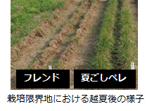 越夏性が向上ペレニアルライグラス栽培限界地域において、既存品種よりも越夏性が大幅に向上していることが示されている。 収量性が向上放牧を想定した試験において、3年間合計の乾物収量が既存品種「フレンド」と比較して9%多収である。 ![]() |