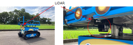 LiDAR(レーザーを用いたレーダー)を利用した小型電動追従ロボットは、追従、リモコン、自動運転の3種類の走行制御があり、運転はボタン一つで誰でも簡単に操作が可能である。また、クローラ式であらゆる農地における走破性が高く、様々な農業現場で農作業の補助に利用でき、電動化を通して農作業のカーボンニュートラル化に貢献できる。 ![]() |