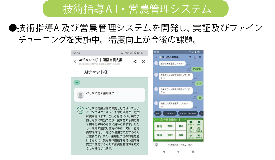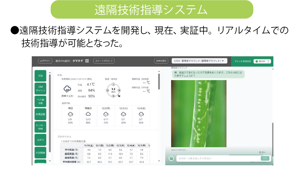 - 遠隔技術指導システム:遠隔技術指導実証が終了後、2026年3月にNTTアグリテクノロジーよりサービス化を予定。