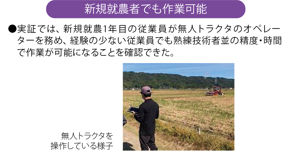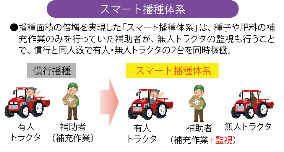 - 無人トラクタ等の導入により大麦の播種能力を倍増