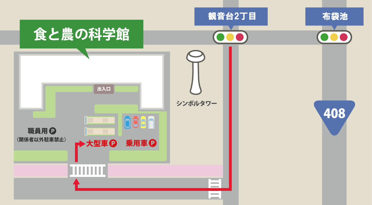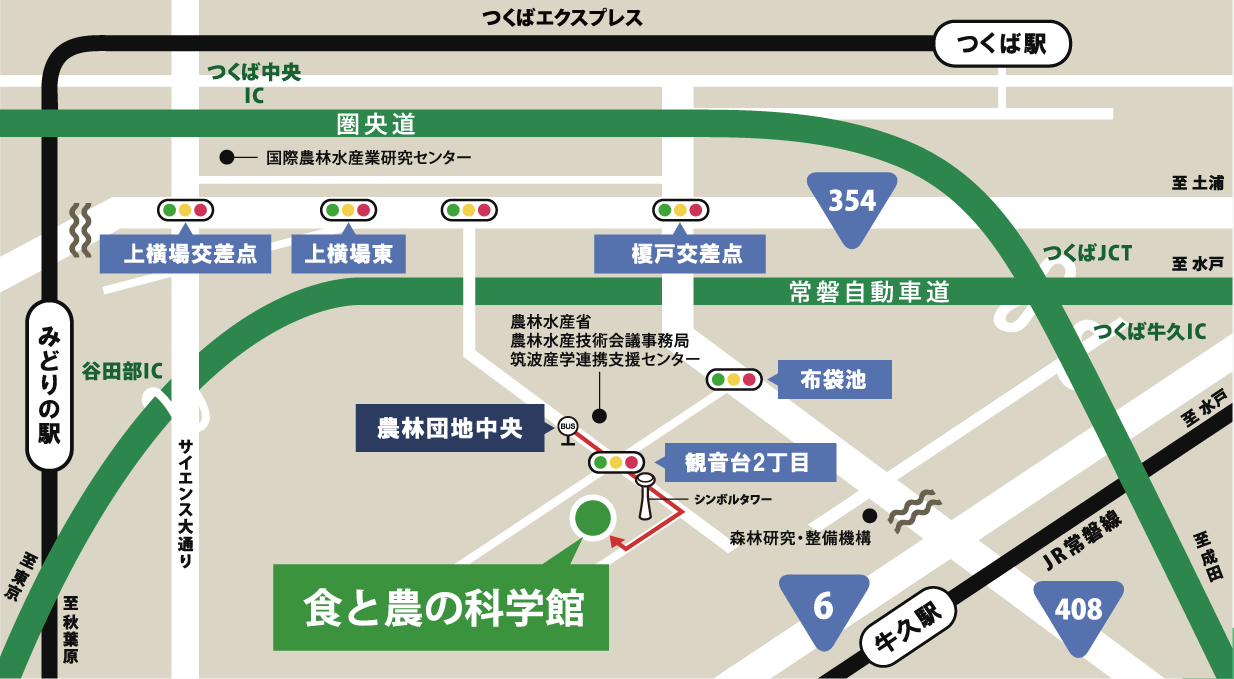 - ※バス降車後、「食と農の科学館」まで徒歩約5分。