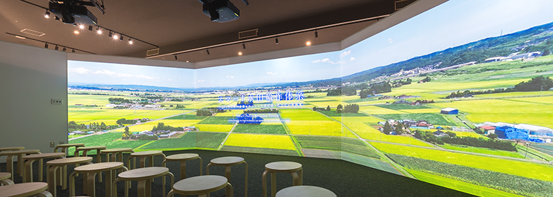 3面のスクリーンに映像が映し出され、 研究現場の臨場感を味わうことができます。